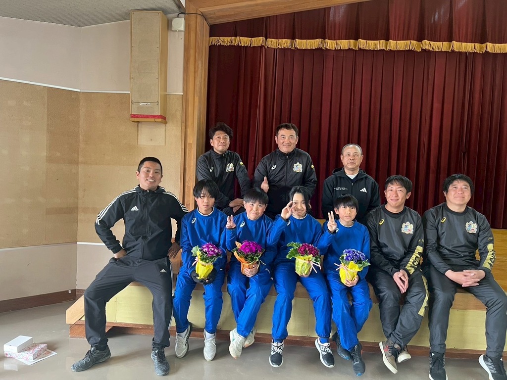 2月28日、焼山ジュニアスポーツクラブ(野球部、ソフトテニス部、サッカー部合同)の本部卒部式が行われました。